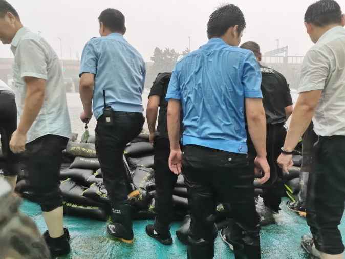 生产制造部组织各生产单位积极行动,组织排查厂区漏水点、搬运防汛沙袋、封堵返流区、清理排水口、清除积水、确保人员设备和厂房的安全,并对重点区域进行二次加固防汛。